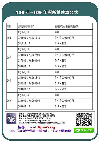 依據上揭規定提供106年度至109年度速算公式如下,營利事業辦理營利事業所得稅結算、決算及清算申報時特別留意,以免權益受損。